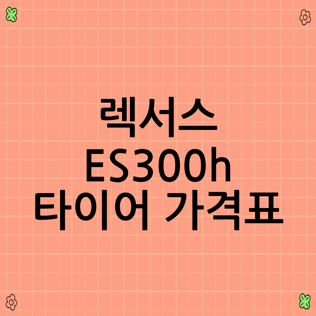 - 정숙성: ES300h의 장점을 극대화하기 위해 저소음 타이어를 선택하는 것이 좋습니다.