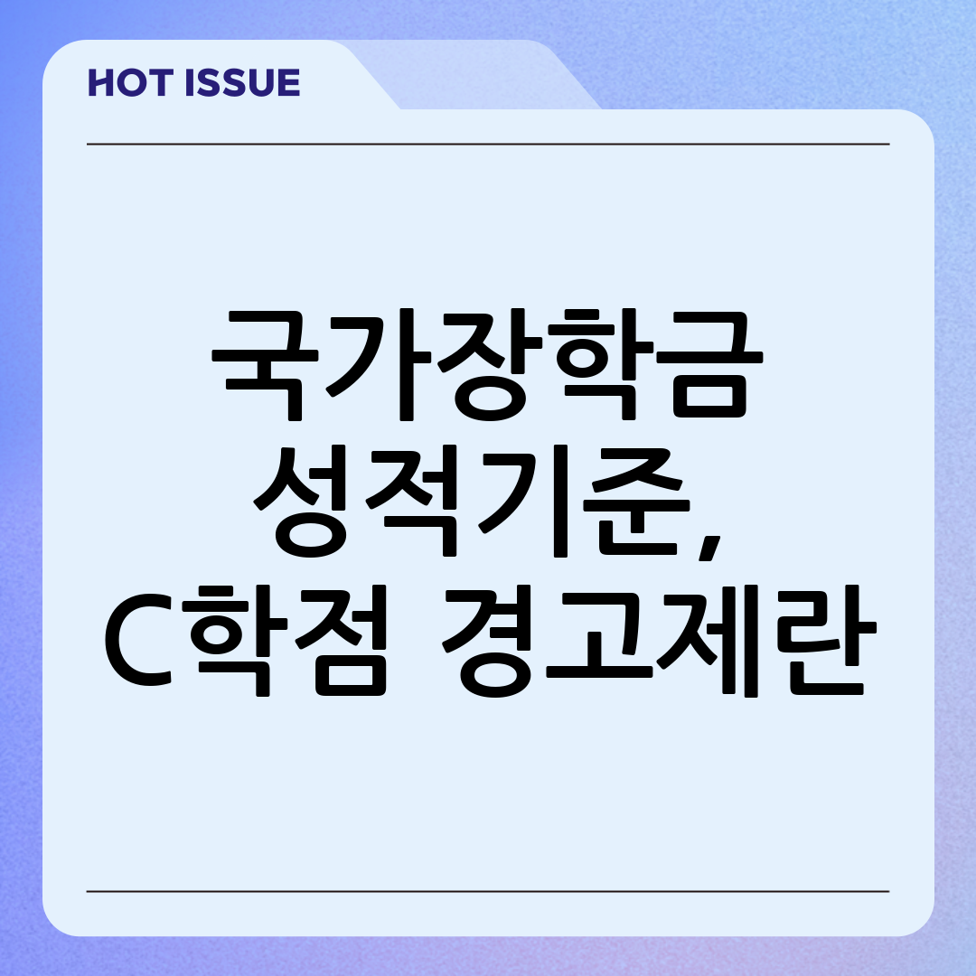 이는 경제적 어려움으로 인해 학업에 온전히 집중하기 어려운 학생들의 상황을 고려한 조치입니다. C학점 경고제와는 별개의 기준으로, 해당 학생들은 재학 기간 내내 C학점(70점) 이상만 유지하면 지속적으로 장학금을 받을 수 있습니다. 단, 이 역시 C학점 경고제와 마찬가지로, 다음 학기에는 더 나은 성적을 받도록 노력해야 한다는 격려의 의미를 담고 있다는 점을 기억해야 합니다.
