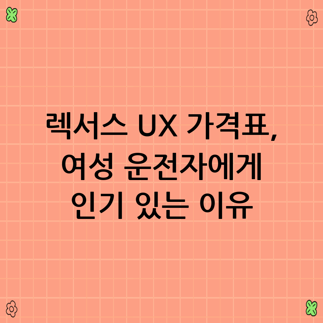 렉서스 UX 가격표 완벽 분석: 여성 운전자에게 사랑받는 이유와 함께!